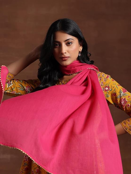 Libas Grey Solid Chanderi Silk Straight Kurta With Palazzos & Dupatta