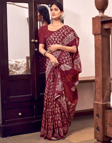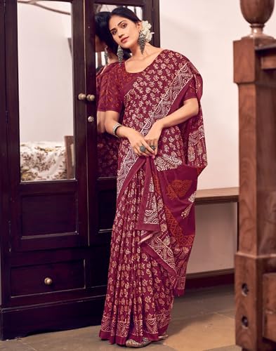 SIRIL Women's Georgette Printed Saree With Unstitched Blouse Piece Combo Pack Of 2
