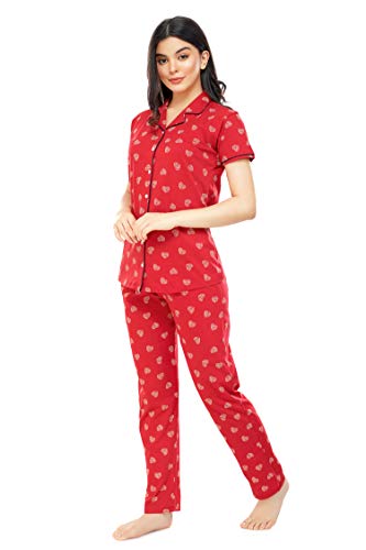 LOTIK Women's Cotton Double Heart Print Knee Length Short Nighty