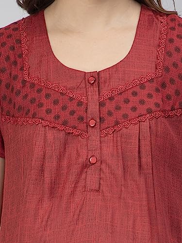 Enamor Essentials Short Sleeve Round Neck Relaxed Fit Cotton Mini Lounge Dress for Womens-E802